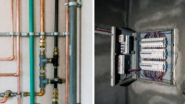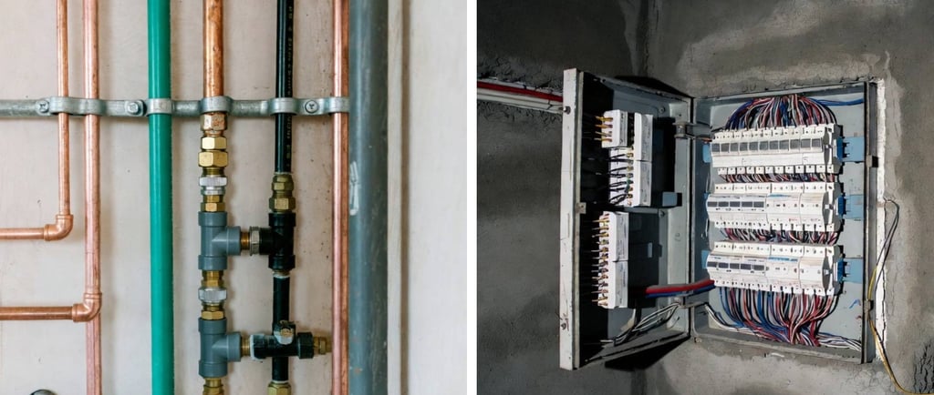 تتبع المسارات: تأكد من وجود "قساطل" (مواسير بلاستيكية) لتمديدات الكهرباء، فالتمديد المباشر للسلك داخل الحائط يصعب صيانته مستقبلاً دون تكسير.